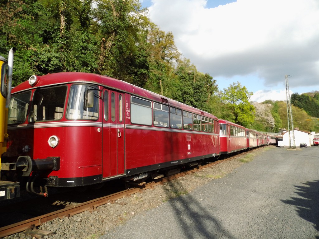 Schienenbusse der Eifelbahnverkehrsgesellschaft in Linz am Rhein (Informationen unter